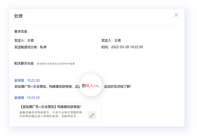 企业微信,还有一个会话存档功能,比较好用的,如果员工使用个人微信与客户沟通,企业管理者是无法了解得员工跟客户之间的沟通内容的,员工的聊天质量,效率,合不合规,有没有私单,等都没办法得到质量保证和监管,企业微信,则可以解决员工飞单、做私单烦恼,规范员工行为管理,敏感信息,敏感行为监管,及时提醒未回复,慢回复,低质量沟通,无效聊天及时提醒排查消极怠工,提高效率。